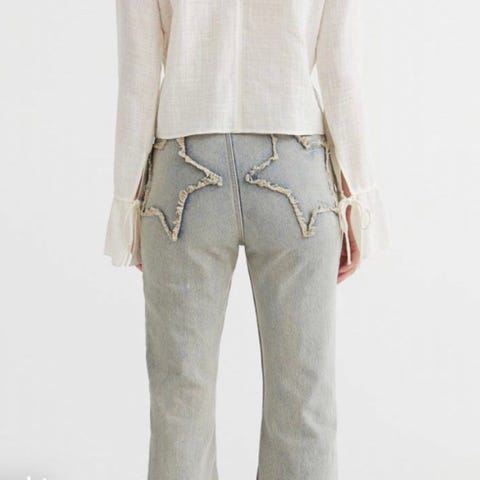 Selger en helt ny og ubrukt denimbukse/jeans fra H&M. Buksene har et stilig design med blekede stjerner over det hele.