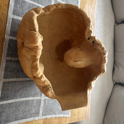 Veldig dekorativ treknute, kåte eller rikule. Denne er fra en stor arvet samling og jeg selger et utvalg av dem. Den er 37 cm lang liggende og ca 17 cm på det bredeste punktet. 40 cm i omkrets rundt midten. Det ligger ved et bilde med noe dekor som eksempel. Den kan dekorere slik den er eller bli veldig fin med pynt som passer årstiden.