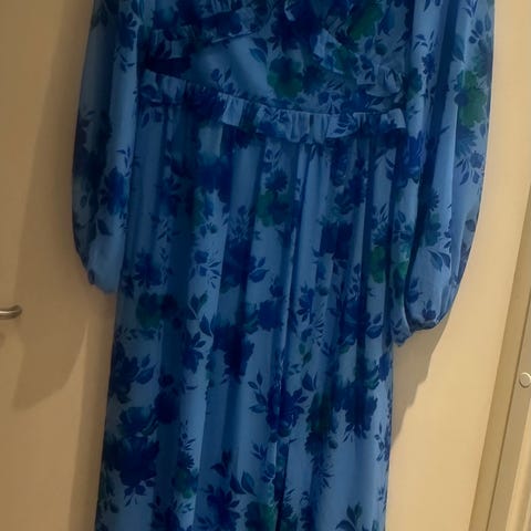 Helt ny, nydelig blå kjole fra Noa Noa i størrelse 40. Myk og lett i stoffet, knapper foran og belte i livet. Kun prøvd på en gang. Nypris 1.799 kr. Selges for 500 kr.