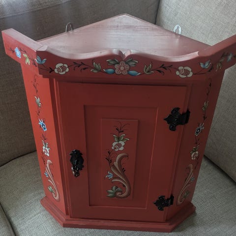 Selger et nydelig kråskap som er lagd av ask, rosemalt for ett år siden i Trøndelag.