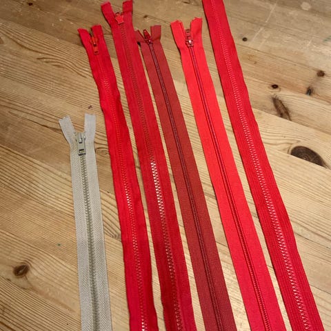 18 stykk glidelås i forskjellige lengder og farger, mange er ubrukte med lapp. De fleste uten lapp er også ubrukt.