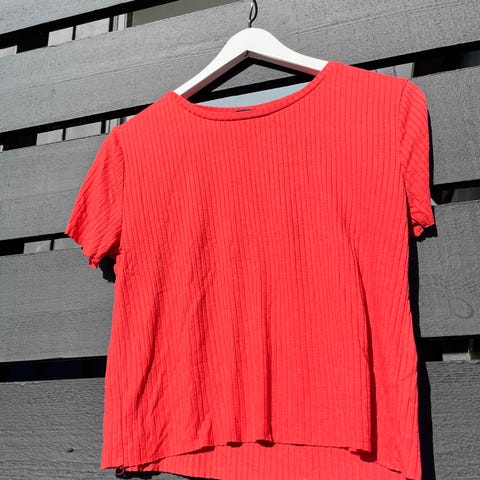 Selger en ubrukt t-skjorte fra Adidas. Den er rød / burgunderrød og i str S, med en litt oversized passform. Jeg ser ingen bruksmerker.