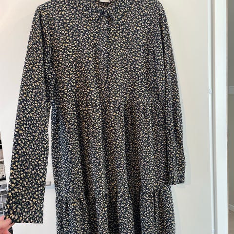 Bomullskjole fra Jacqueline de Yong, lårkort (hvert fall for meg som er 174 cm høy), med lange ermer.