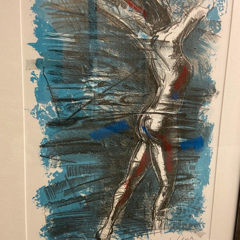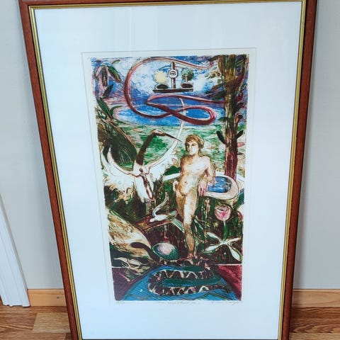 Dette er spesialt grafik som er tredimensional , det er laget 4 av det og det er nr,3 str, 73×53 , med ramme .