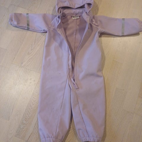 Liten klespakke med ytterklær. Dressene er pent brukte, men har noe bruksslitasje. Softshelldressen har noe minimal bruksslitasje som knapt er synlig, mens refleksene på dress nr. 3 er slitte.