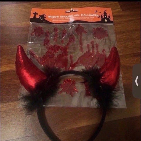 Selger 2 stk. ulike hodeplagg for utkledning. Har igjen 1 stk. Edderkopp og 1 stk. Kake.