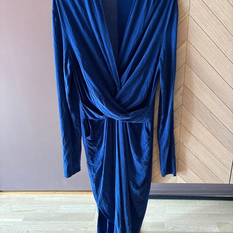 Bodycon kjole med fin knutedetalj foran og ganske god utringning. Passer small til medium vil jeg si. Rekker til ca kneet.