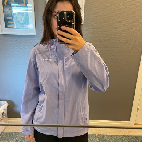 Selger en nesten ubrukt ytterjakke fra Columbia. Den er grå/hvit i str S. Har hette. Jeg ser ingen bruksmerker. Jakken er en blanding av boblejakke øverst, og stretchy stoff nederst.