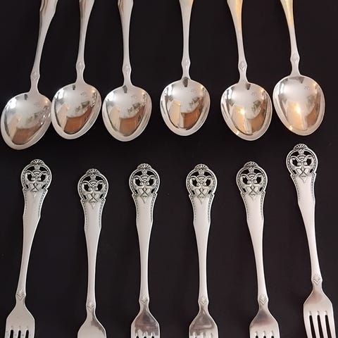 En enslig pen teskje i sølvplett 20 i mønsteret Sonja.