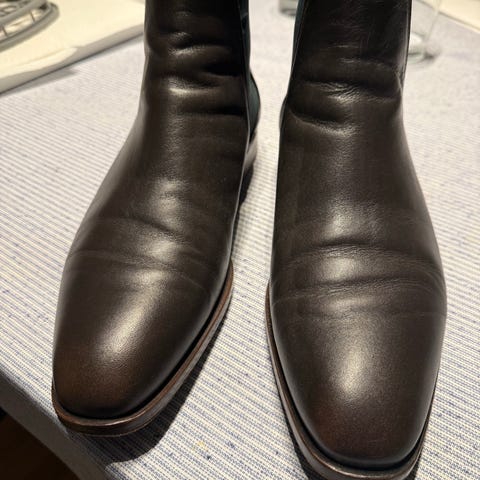 Pent brukte Paul Smith støvler. Mørk brun med Dainite såler. Perfekt for julebordssesongen. Romslig str. 41, så vil passe 41/42.