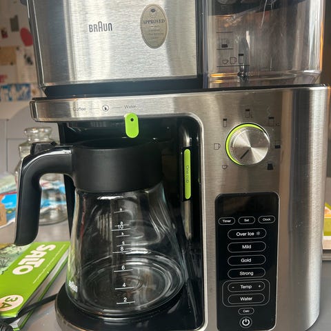 Braun kaffetrakter. Brukt frå 2018-2023, ca 1-2 gonger i året. Glasskanna blei knust ved eit uhell, so den følgjer ikkje med.