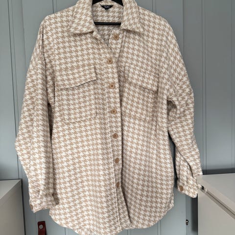 Kvalitets jakke, skreddersydd str 40/L, lenge midt på lårene. Flott sømarbeid.