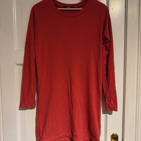 Bredstripet, rust rød kjole fra Gina Tricot.