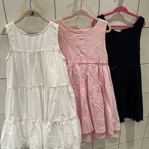 Selger flere pen kjoler til jente. Størrelse fra 98 , og et par lakk sko.