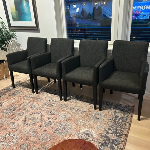 Victor Stol i grønn velour fra Home & Cottage. Stolene er pent brukt, ingen flekker og er helt fantastiske å sitte lenge i. Selges kun fordi jeg ønsker en annen farge, ellers ville jeg ha beholdt stolene.