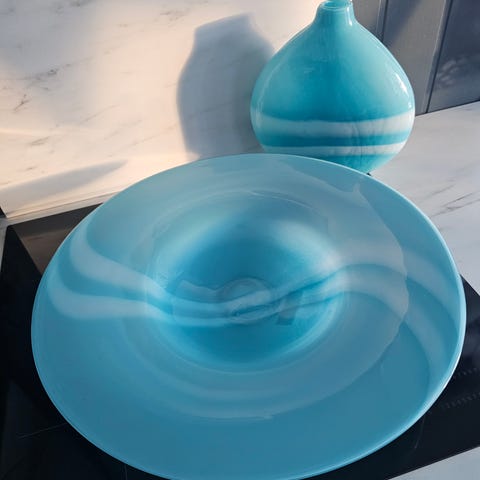 En liten bolle i hamret kobber med skaft på 3 bein kr 150,-. Denne er solgt. Se bilde 5 av 10.