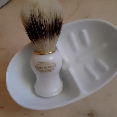 Liten barber skål i tre. Usikker på tresort, kan være mango.
