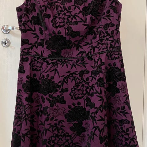 Pent brukt lilla ballkjole i str. M/L selges, kun brukt en gang. Denne er 2-delt med regulerbart korsett. Kommer med korsett, skjørt, bolero/jakke og sjal.