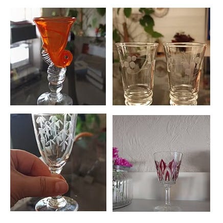 Selger 4 snapsglass / shot / likørglass i Østen inspirert stil. Dem er lite brukt. Passer også til små blomstervaser.
