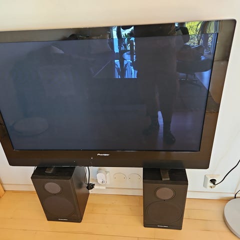 Legendarisk plasmaskjerm fra Pioneer. Dette er fra 8. og nest siste generasjon Kuro-skjermer. Meget bra bilde, fungerer såvidt jeg kan se akkurat som den skal. Denne har innebygget høyttaler, så det er bare tut og kjør. Har dessverre ikke bord- eller veggfeste, og heller ikke fjernkontroll. Men den kan festes med standard veggfeste, og universal fjernkontroll bør fungere helt fint.