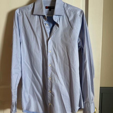 Eton skjorter med mansjett ermer, str. 41 contemporary og den andre i str. 43, selges. Begge skjortene er bare brukt 1 eller 2 ganger. Selges for kr. 600,- pr. skjorte, alt kr. 1.150,- samlet.
