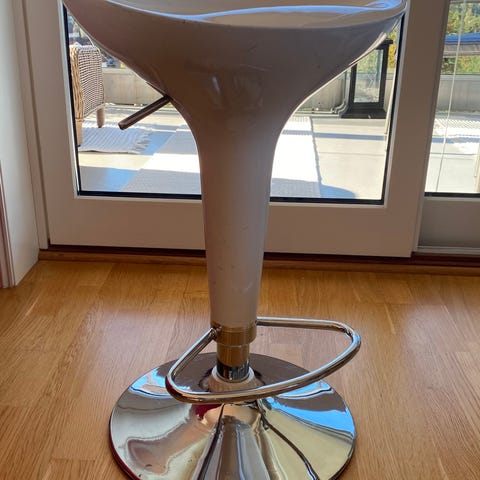 Høy barstol selges grunnet flytting. Den var mistet stangen som man lener beina på, men fullt brukelig!