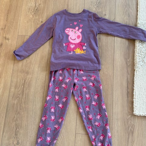 Pent og lite brukt peppa gris sett. Settet har fleece på innsiden og er dermed deilig når temperaturen blir lavere. Størrelse 62.