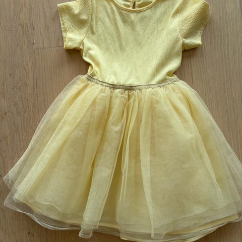 Kortermet kjole i hvit og fin gulfarge. Disse selges dessverre ikke lenger, men har vært favoritter i mange år her.