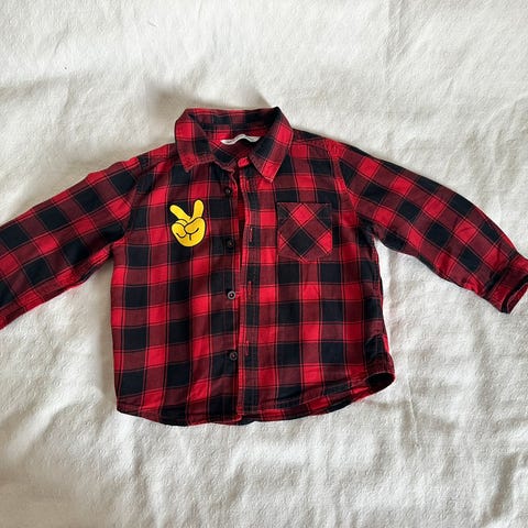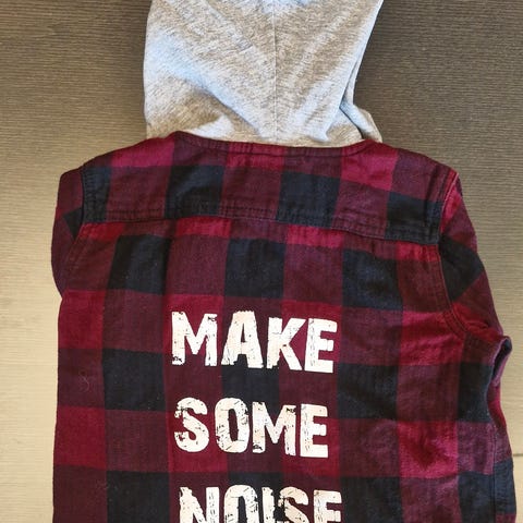 hei! selger en veldig kul rutete skjorte med hette dra kappahl i størrelse 80. det står MAKE SOME NOISE på baksiden. rød med grå/melange hette. perfekt til en lite kul gutt! pent brukt. kan hentes i tønsberg sentrum eller sendes mot frakt.