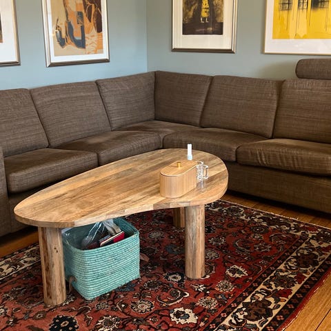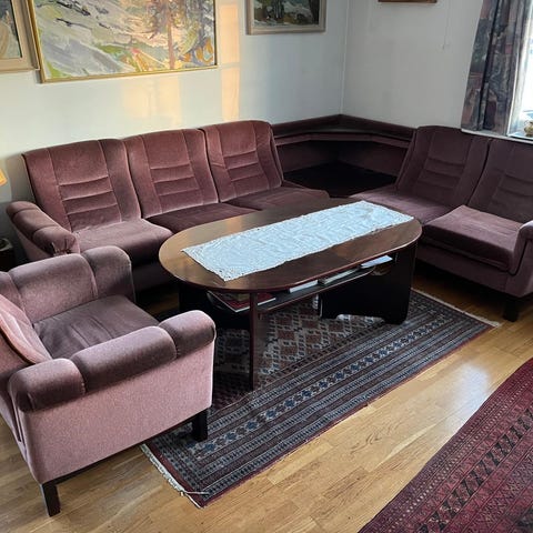 Litt info om sofa: sofaen har ende avslutning på høyre side. Har svarte bein