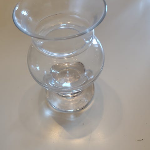 Det ene glasset har et lite skår i stetten som vist på bildet.