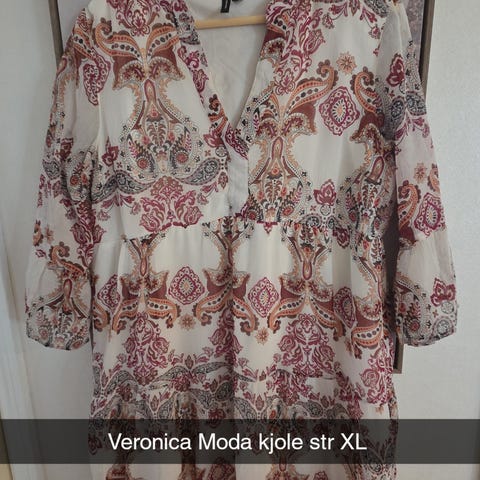 Boheme hverdagskjole for dame i størrelse XL. Kjolen er laget i viskose og har et flerfarget mønster med ulike sterke farger. Modellen har 3/4-lange ermer og rund hals med kontrastkant og dekorative detaljer foran. Lengden går omtrent til under kneet, avhengig av høyde. Passer som hverdagskjole eller til uformelle anledninger.