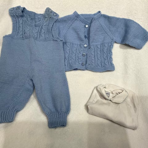 Ullgenser. Grå og turkise striper, med røde detaljer. Pent brukt