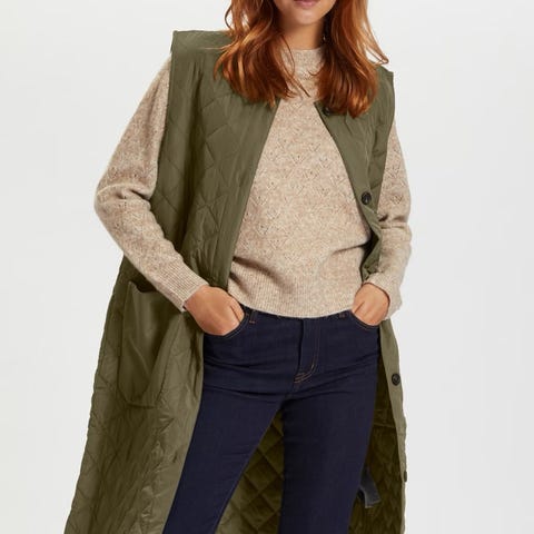Gustav Rosalina er en elegant og smart quiltet vest med et ton i ton mønster. Den har store praktiske lommer på fronten og fine avrundede kanter.