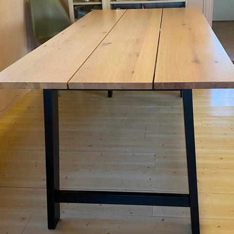 4 stk konferansebord til salgs. Pen bordflate. Enkel å slå opp. Stabil. Står stødig når de er slått sammen. Høy kvalitet. Samlet kr 1.800 eller bud. Må hentes. Lite brukt. Noen flekker på understell etter lagring. Ring 90135756 for mer informasjon. Bordene står i Bergen