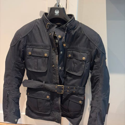 Mc jakken er nesten ikke brukt, men det er et hull i venstre lomme.