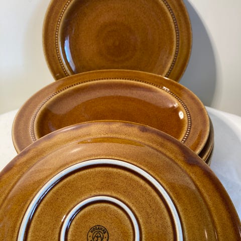 Stilig gammelt service fra Royal Alma Staffordshire Ironstone. 10 dype skåler. Selges samlet.