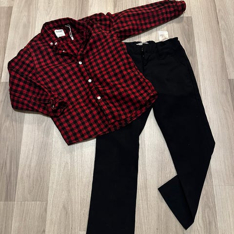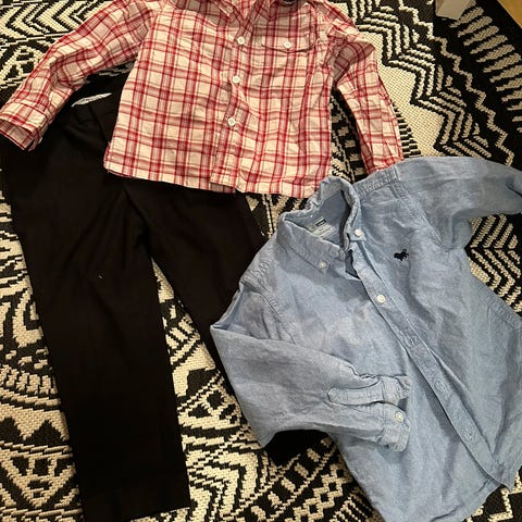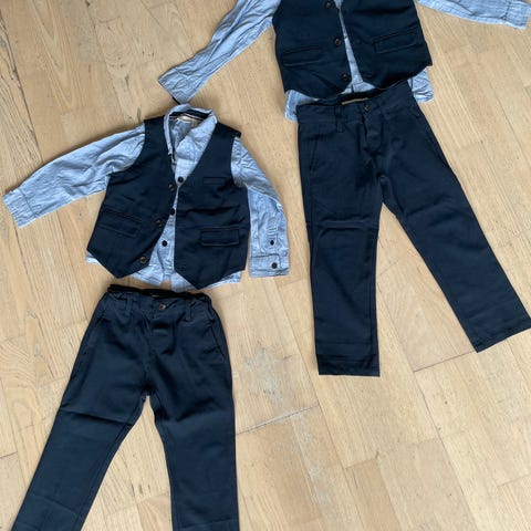 Penklær fra Zara, skjorte med sløyfe i str 98 og bukse i 104. Brukt samtidig som sett av oss.