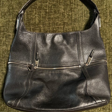 Mål; ca. 22x26x9,5 cm . Den har et kult design og supermykt skinn.
