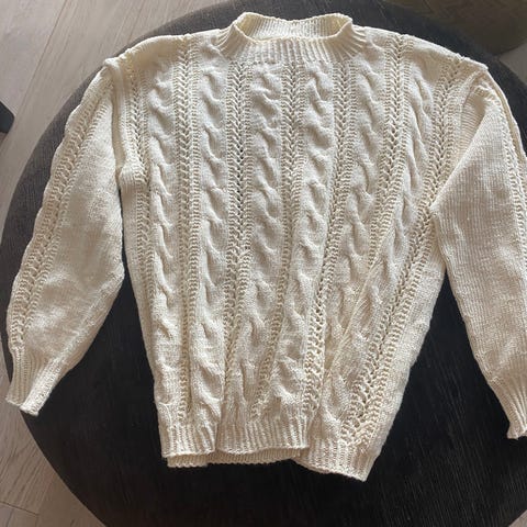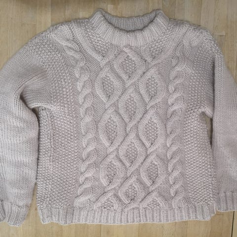 Handknit Lecomte genser med flettemønster str 38