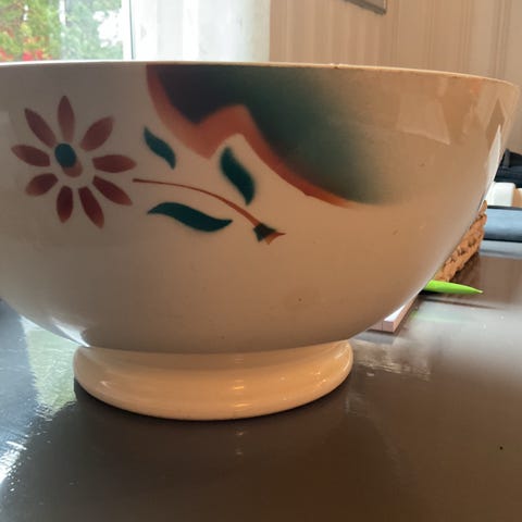Stor skål med blå blomster på framme&bak selges for 100,- (NB.Ubetydelig brist inni, fortsatt brukbar) ✨✨✨✨✨🌸🌿🌺🌿🌸✨✨✨✨✨