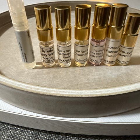 Forskjellige nisje parfymeprøver/ dekanter, både nye og brukte: Atelier Des Ors EDP Blue Madelein 2,5 Mo - 120 kr