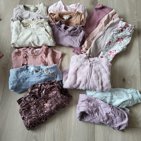 Klespakke med diverse babyklær i str 68 (og bittelitt i 74), totalt 16 plagg