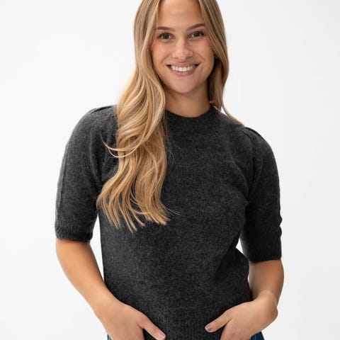 Strikket topp med korte puffermer M