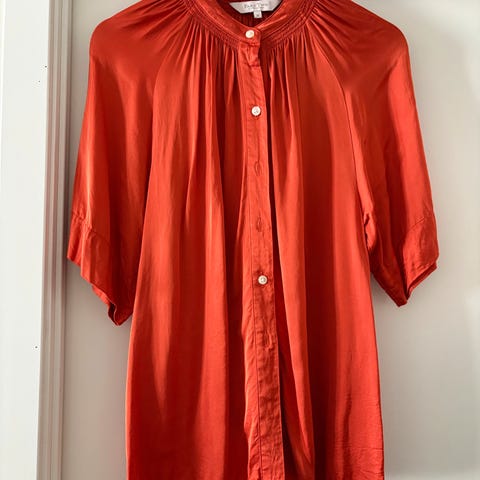 Selges da den er for liten, offwhite med marine, fine detaljer, tror det er bomull. Har tilsvarende med rosa bunn også til salgs.