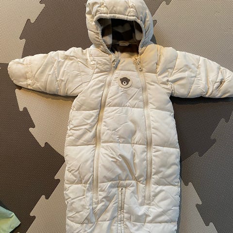 Knapper på fremsiden og ned mot foten, for enkel av- og påkledning. Litt nuppete, men er ellers hel og fin.