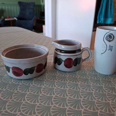 Ildfast lokkfat i Annika mønster, fra Rørstrand. 17cm i diameter oppe.