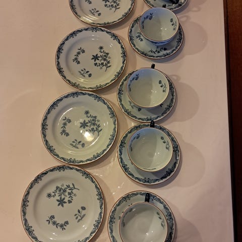 Fra 1993. Jeg vet ikke hva mønsteret heter. 10kanter rundt koppene. I fin stand.