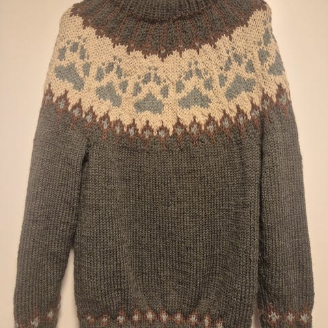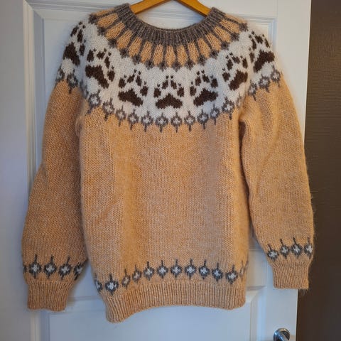 Selger en ny hjemmestrikket Villmarksgenser med kobber som bunnfarge og roserød, lysgrå, naturhvit i mønsteret. Hobbygarnet består av 100% australsk ull som er et garn med enestående mykhet og volum. Overvidde 98 cm - hel lengde fra skulder 65 cm - ermelengde 52 cm. Genseren er unisex og passer både dame og herre.