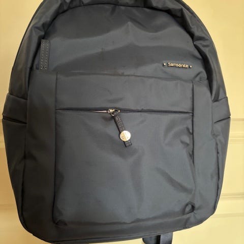Ryggsekk med en sele over den ene skulderen å kryss over rygg. 36x25x10 cm